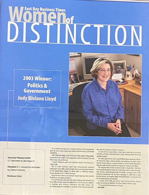 2003 by JudyLloyd | May 5, 2020 2003 Named the San Francisco Business Times Woman of Distinction in Government & Politics.